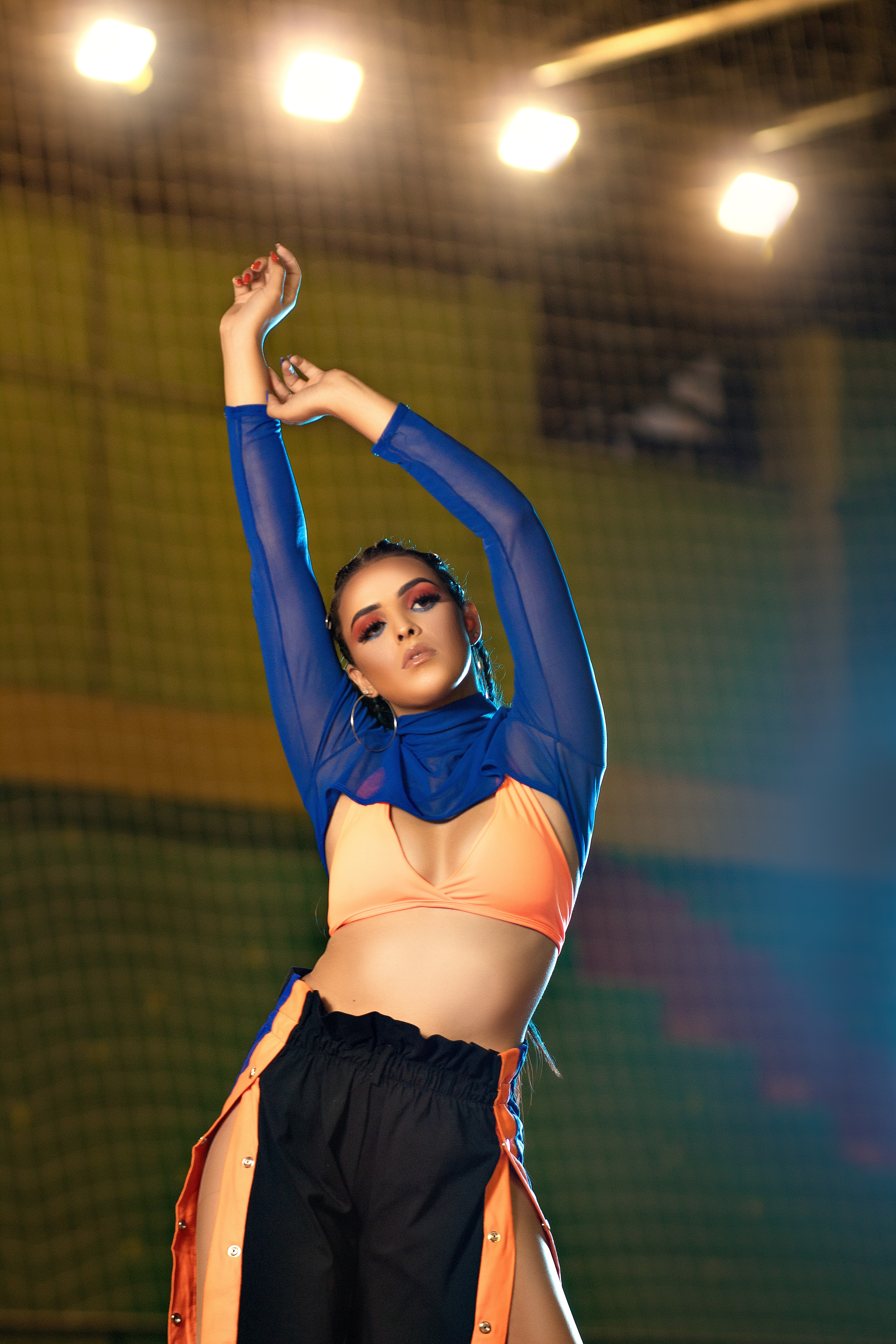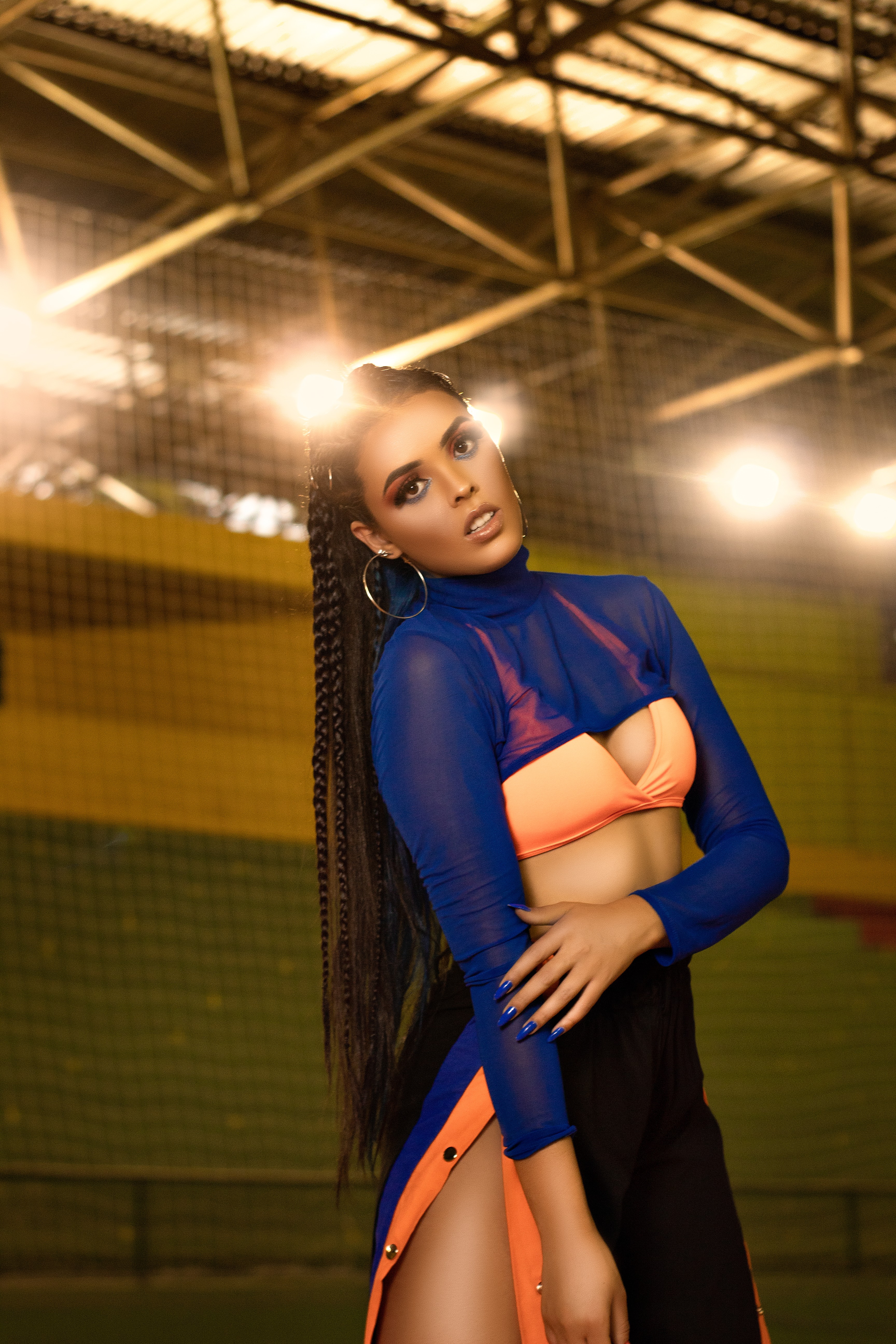 Defini cores de looks que fossem referências para o clipe com a La.Jummy, que foram AZUL ROYAL e LARANJA NEON. Eu e Ronaldo (proprietário da LaJummy) nos reunimos para definirmos esses detalhes. Algumas bijuterias cheguei a pegar com a Naiara Silva pra enriquecer mais os looks. Me atentei aos detalhes de cores pra que fossem marcantes na maquiagem, Paloma Scarlathy me entendeu super bem e deixou característico. Fiz algumas tranças bem a cara do cenário do clipe que também casou super bem, fiz com a Maria Rodrigues. Até nas unhas eu coloquei a CARA DO POP, enormes e uma mão de cada cor com a Franciele Melo e defini depois as sobrancelhas, deixei marcantes e expressivas com a Amanda.