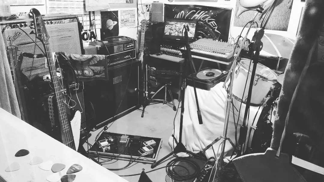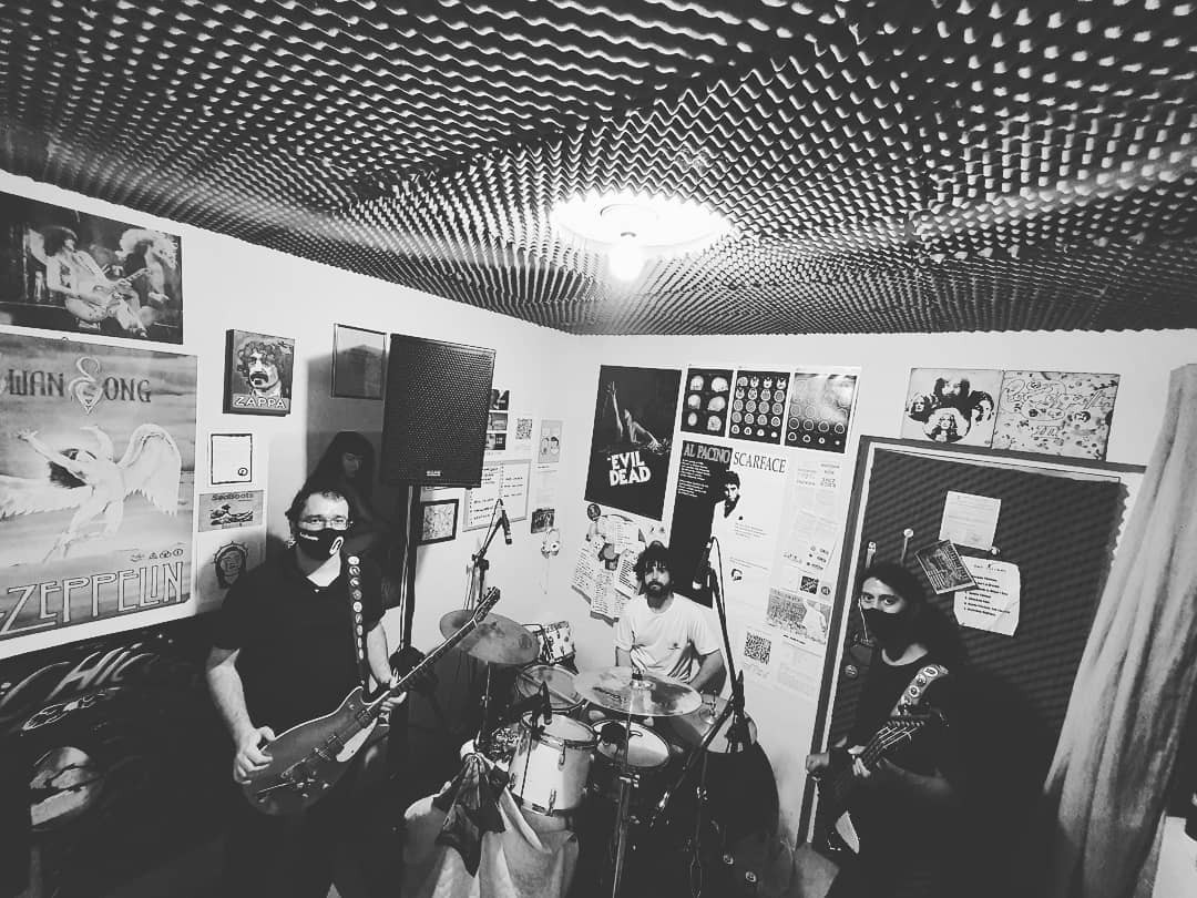 2015. É um cômodo um pouco isolado da casa, onde minha avó Carminha mantinha suas máquinas de costura, e no início até aproveitamos duas máquinas destas como suporte para amplificadores. Como os ensaios começaram a ficar cada vez mais frequentes, decidimos fazer a adaptação da sala para se tornar um estúdio mais adequado em 2017, realizando o isolamento acústico e instalando o ar-condicionado para tentar emitir o mínimo de ruído possível para fora da sala, objetivo que acabou dando certo.
