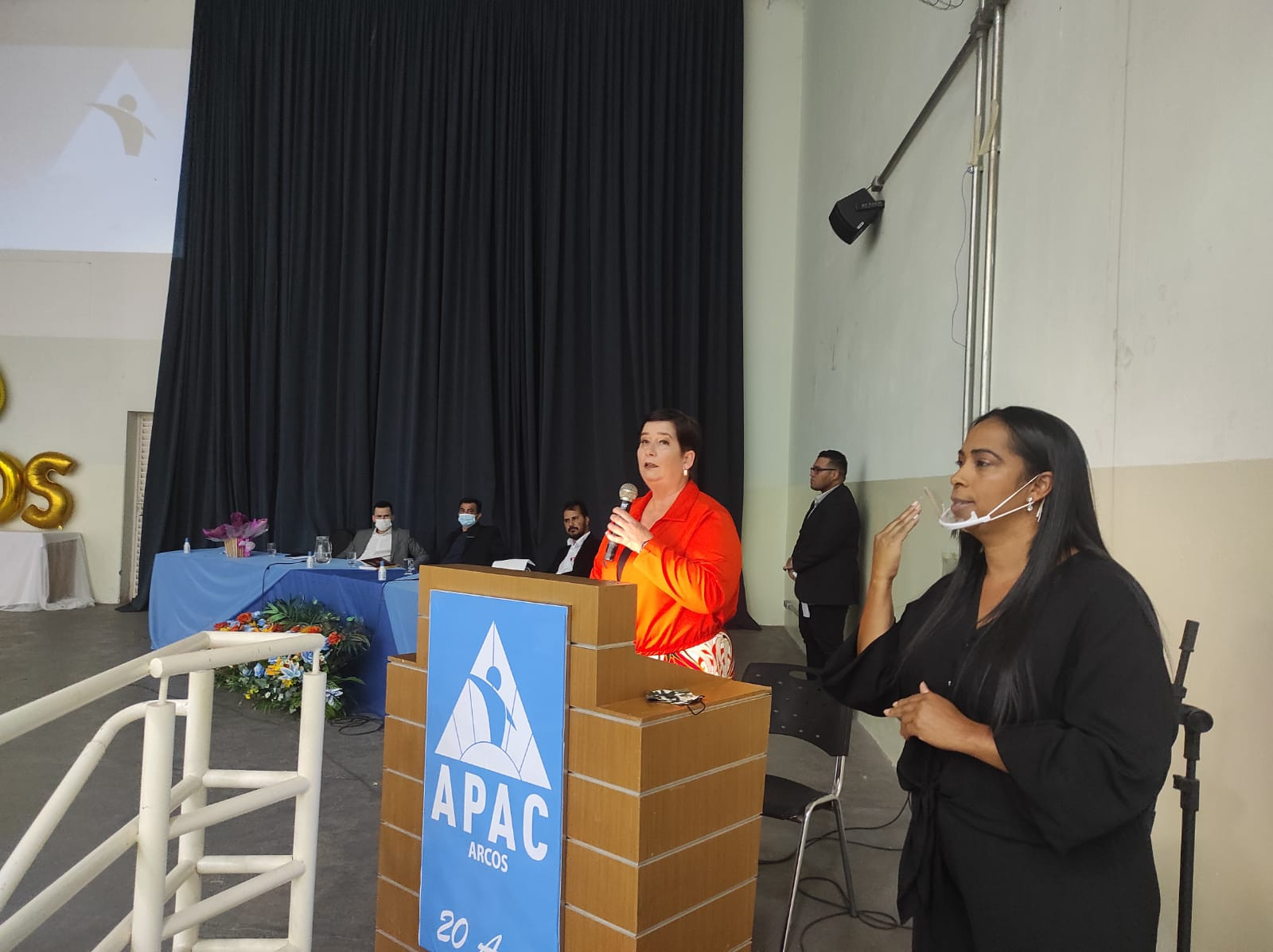 A primeira a se pronunciar no evento foi a vice-presidente da APAC/Arcos, Clícia Alves Ribeiro do Vale, que agradeceu a presença de todos e contou um pouco sobre a história da instituição no município e sobre sua importância na comunidade.