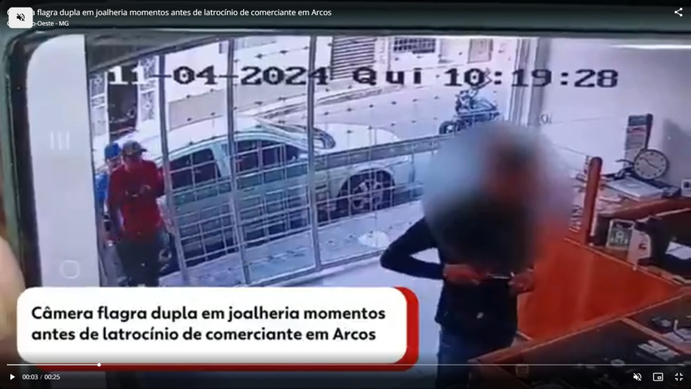 O crime que fez Playboy fugir de Minas Gerais e se esconder na Rocinha aconteceu em abriu de 2024, no Centro de Arcos. Ele e um comparsa assaltaram uma joalheira na cidade. Câmeras de segurança do local gravaram a ação da dupla.