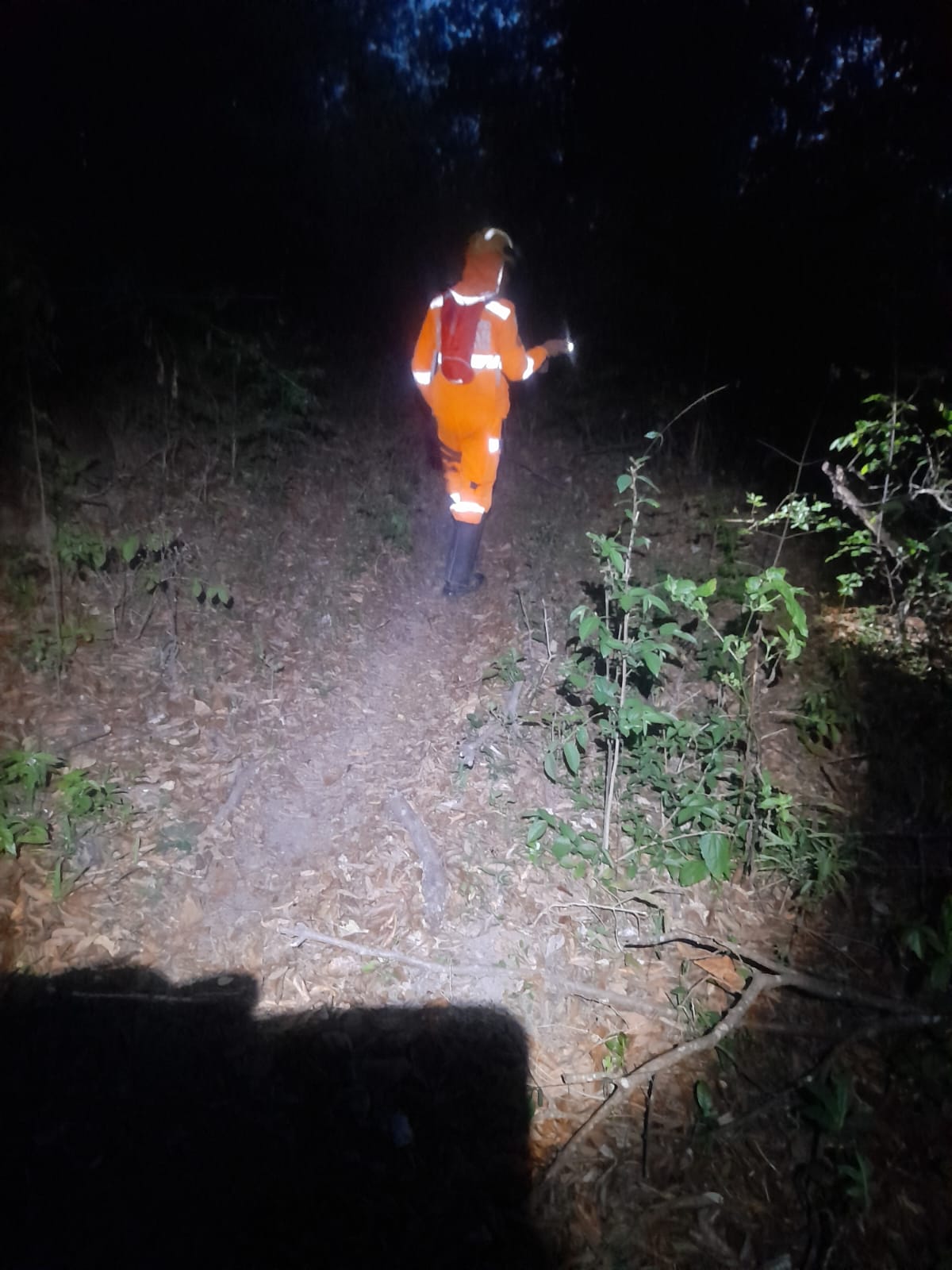 Durante o período noturno, as buscas foram intensificadas com o emprego de drone equipado com câmera térmica, visando ampliar a área de varredura e identificar possíveis sinais térmicos da vítima na vegetação densa.