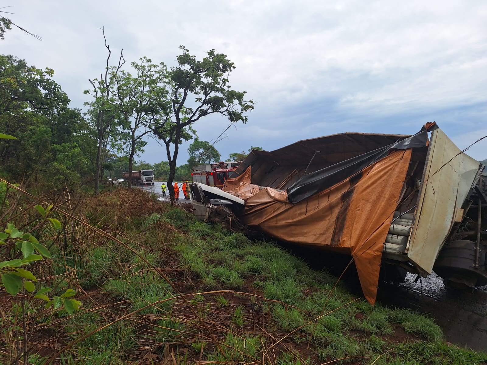 O condutor da carreta, que estava carregado de “postes de cimento” utilizados para iluminação pública, fora arremessado para fora do veículo. A equipe BM em análises no condutor de 25 anos que se encontrava junto ao acostamento, sem sinais vitais e apresentando múltiplas fraturas.