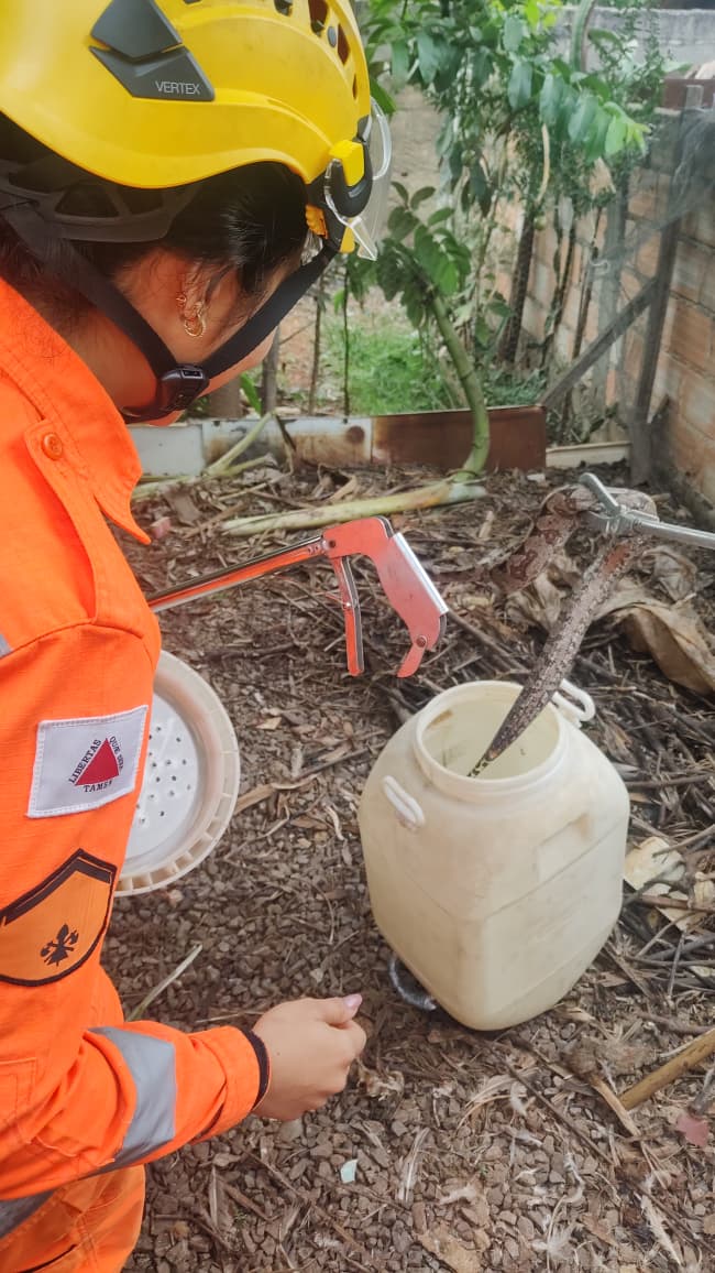 A sucuri não apresentava ferimentos e foi encaminhada para uma área ambiental adequada, seguindo os protocolos estabelecidos. A ocorrência foi encerrada sem intercorrências.