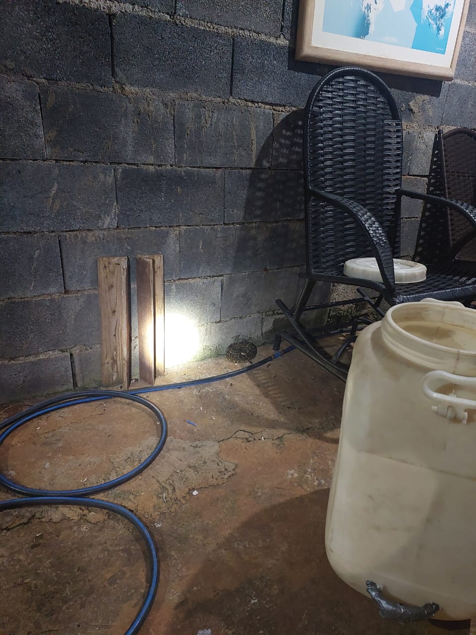 A guarnição foi acionada pelo COBOM após a moradora perceber o animal próximo a uma cadeira, encostada no muro. Os militares realizaram a avaliação de segurança e efetuaram a captura da serpente utilizando técnicas e equipamentos adequados, garantindo a proteção dos moradores e do próprio animal.