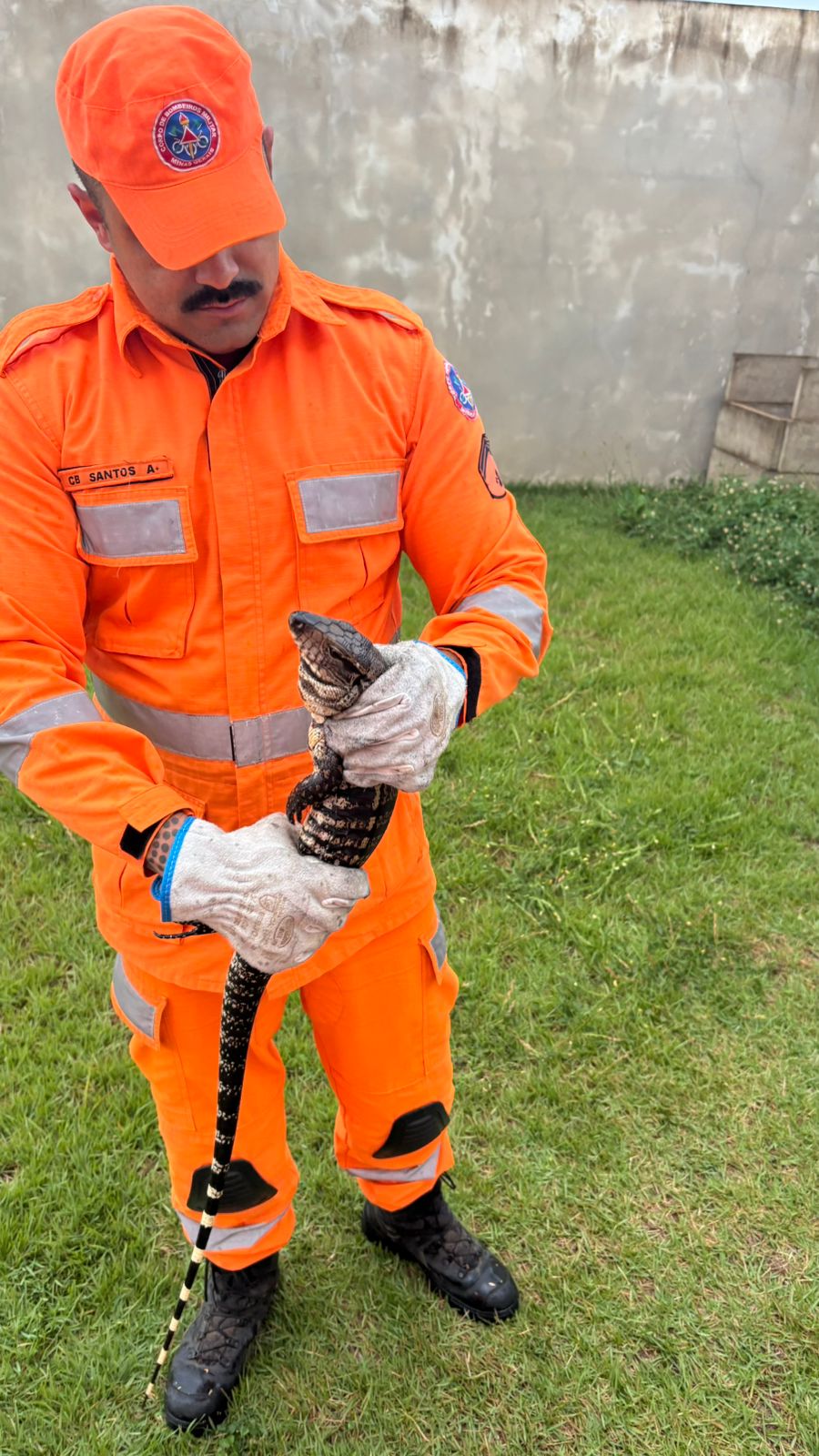 Já no sábado (03), a movimentação ocorreu no quintal de uma residência da cidade. Os moradores foram surpreendidos por um lagarto teiú de grande porte. Devido ao comportamento defensivo do animal, que pode ser agressivo quando acuado, os bombeiros realizaram a captura segura. Como o réptil não apresentava ferimentos, foi imediatamente devolvido à natureza em local ambientalmente adequado.