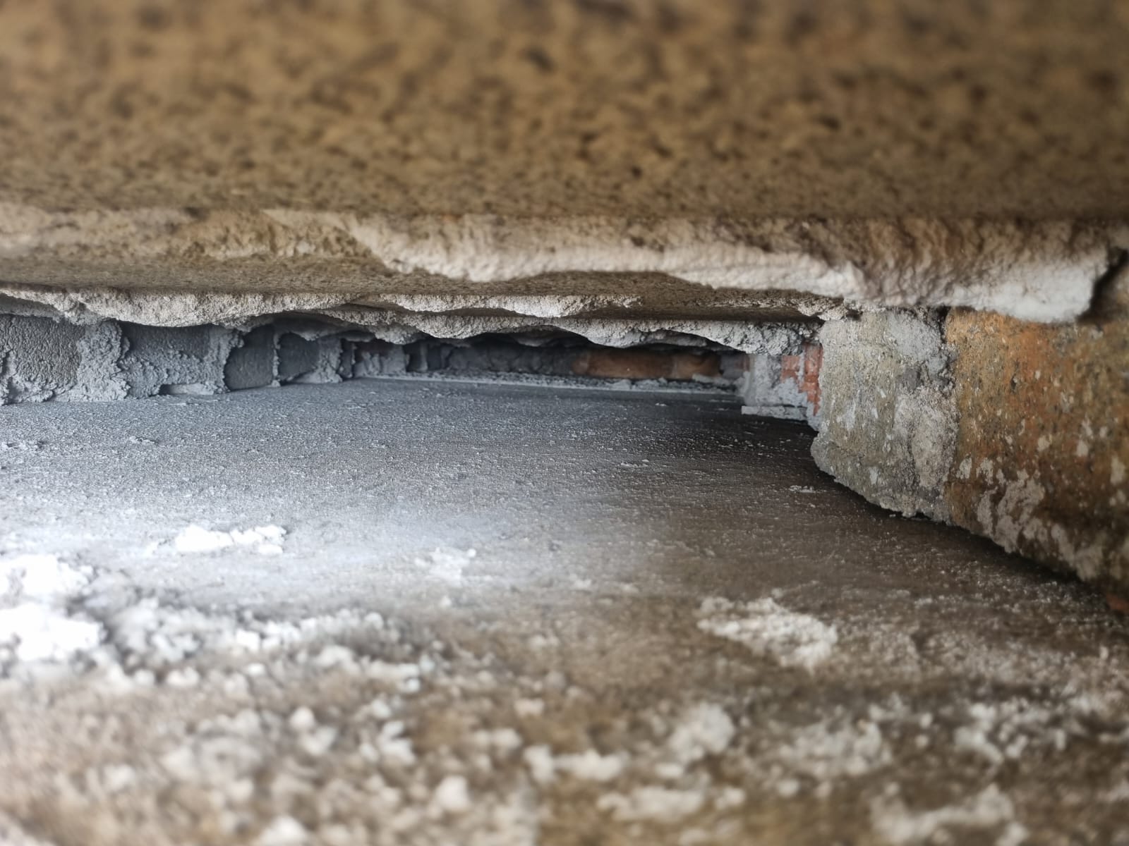 Inicialmente, a equipe tentou retirar o animal utilizando técnicas não destrutivas e equipamentos apropriados, porém, devido à profundidade e à limitação do espaço, não foi possível alcançar o gato com segurança por esses meios.
