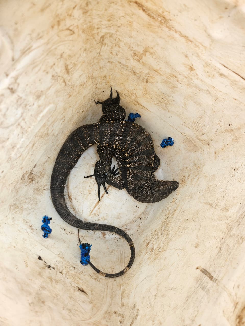Na manhã do dia 30 de janeiro, funcionários de uma empresa no Distrito Industrial foram surpreendidos pela presença de um lagarto Teiú. O animal foi encontrado dentro da garagem da unidade. Devido ao espaço confinado, havia o risco de incidentes tanto para os trabalhadores quanto para o próprio réptil.