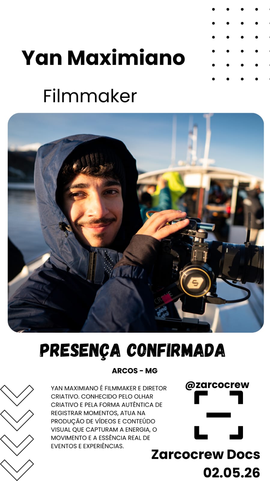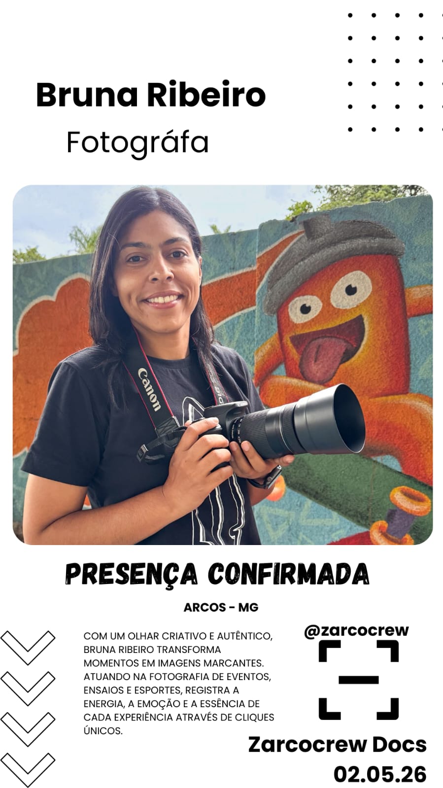 O evento Zarcocrew Docs acontecerá nos dias 02 e 03 de maio, ocupando a Pista de Skate de Arcos com uma programação que une esporte e cultura urbana. Para os competidores, as inscrições têm o valor de R$ 30,00 e podem ser realizadas diretamente no local, com pagamento facilitado via PIX ou dinheiro em uma tenda exclusiva de atendimento.