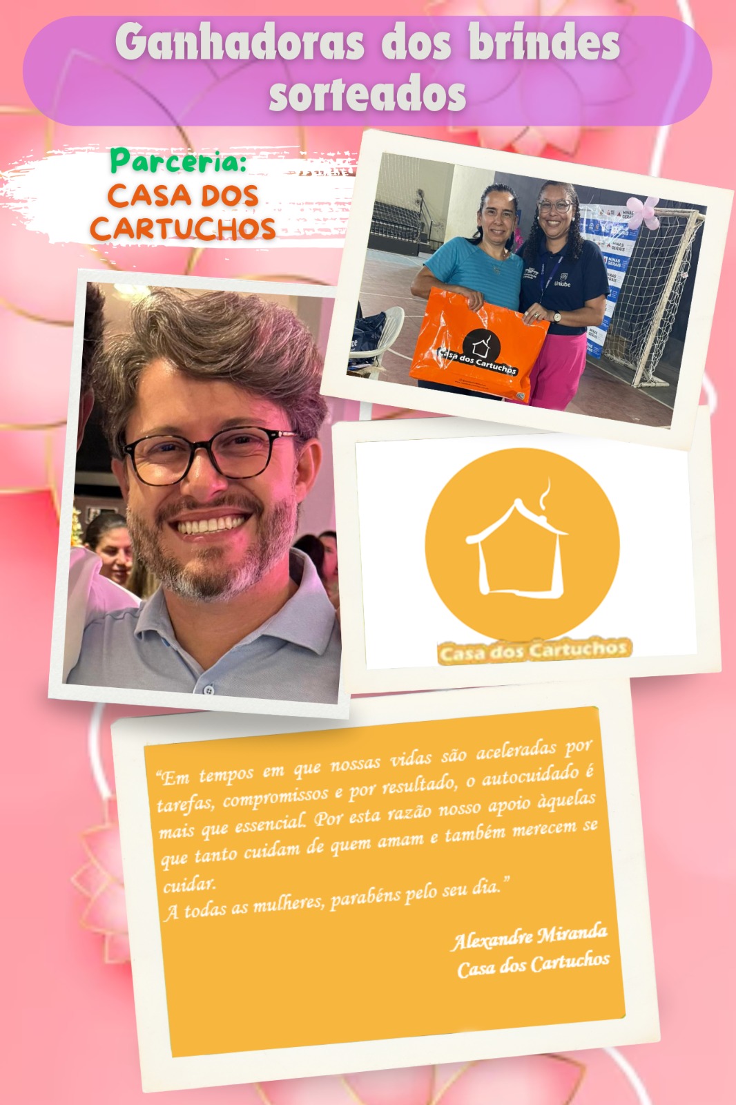 O evento contou com o apoio de parceiros locais, que contribuíram com brindes especiais para sorteio, demonstrando reconhecimento e valorização das mulheres participantes. Entre os itens oferecidos estavam acessórios, produtos de beleza, roupas fitness, kits esportivos, itens de utilidade doméstica e vouchers de alimentação.
