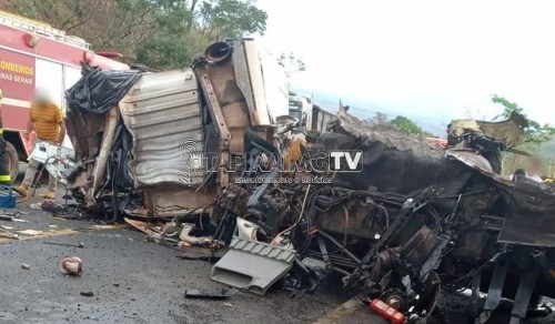 A colisão aconteceu entre um caminhão e quatro carretas. As causas do acidente ainda não foram divulgadas.